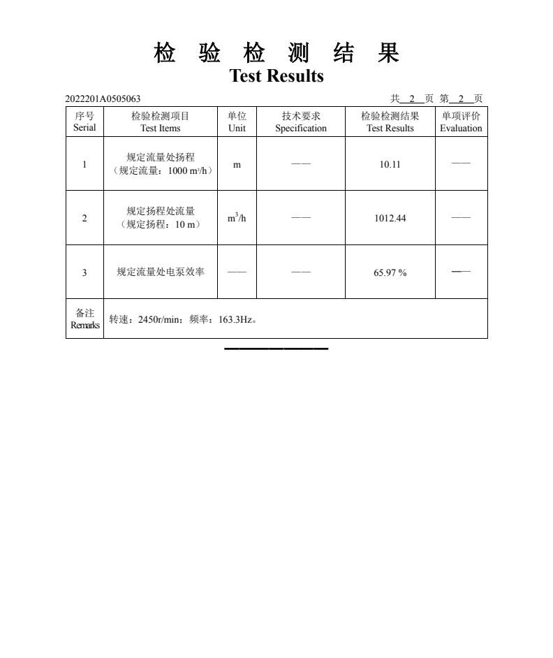 Screw Centrifugal PUMPS Test Report
